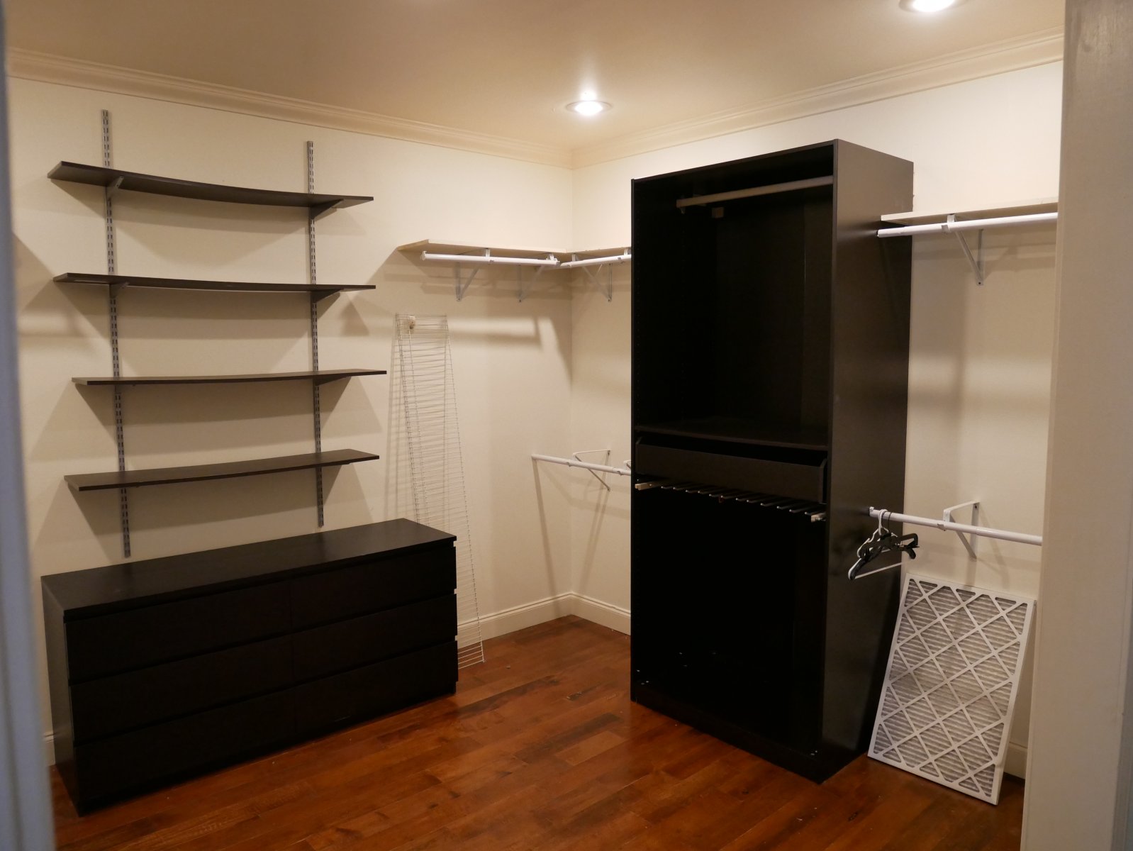 Laminate replaced by hardwood in the master and back entry room